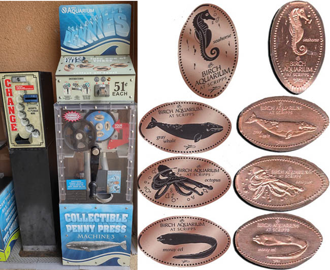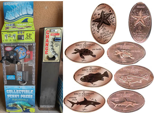 Machine 7: Next to left door/ramp to the tide pools. It is preloaded with pennies and cost $1 for 1 penny, or $4 for all 4. If using card, you will be charged $4 and given 4 pennies.