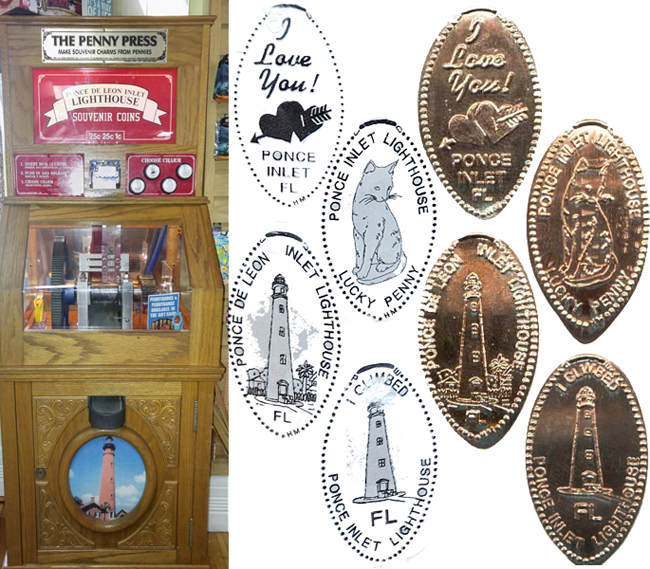 4931 South Peninsula Drive Ponce Inlet, FL , 32127 Phone: (386) 761-1821 Website The electric 4 die machine is in the gift shop on the left as you enter.