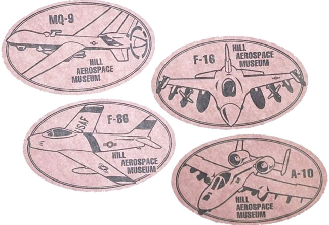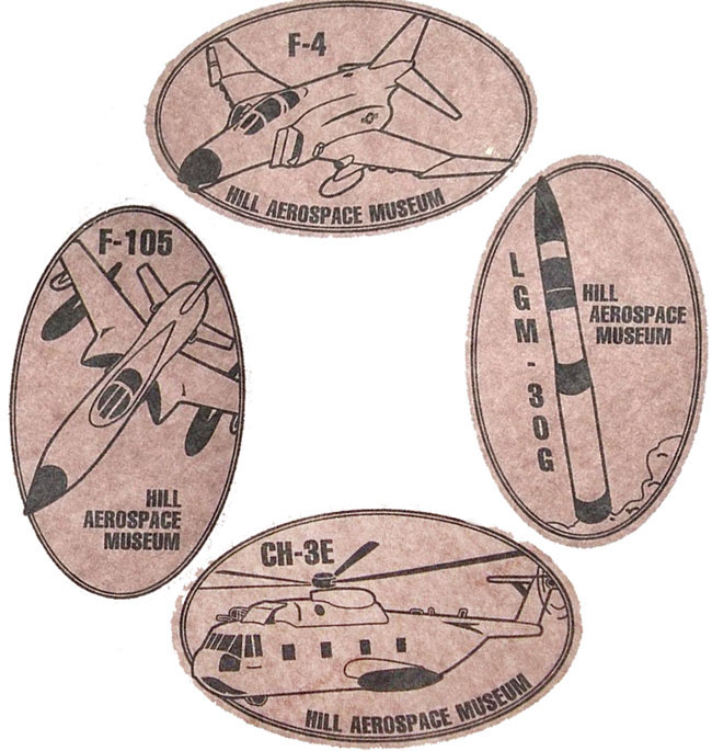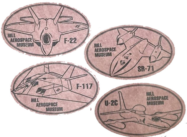 Retired 2: 1) (h) B-17 Flying Fortress, 2) (v) Hill AFB Logo, 3) (h) Sr-71 Blackbird, 4) (h) F-16 Fighting Falcon.
