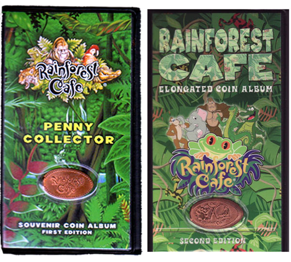 There are two Rainforest Cafes. One is just outside the gate at Animal Kingdom and the other is in Downtown Disney. There is 1 Quarter Machine and 3 Penny Machines at each location. One of the Penny Machines has different Orlando, FL designs, and the Quarter Machines and other two Penny Machines offer different Rainforest Cafe designs at each location.