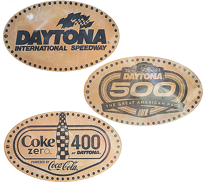 Retired 2018 designs: 1) Daytona International Speedway, 2) 'Coke Zero 400 at Daytona, Powered by Coca Cola', 3) '2018, 60th Annual Daytona 500, The Great American Race'.
