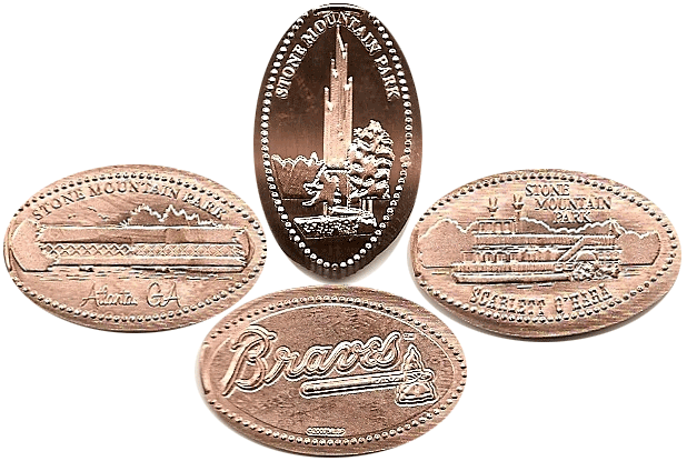 Retired 15: (2017): 1) '190 ft Wide, 90 ft Tall, 400 ft Above the Ground, Davis, Lee, Jackson', Three horsemen carving, 2) Atlanta Braves (Crossed tomahawks logo), 'Stone Mountain Senic Railroad', 4) 'Carillon Atlanta, Georgia'