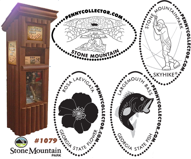 Some designs are new engravings of old designs and there are completely new designs scattered throughout the machines. There is a new Stone Mountain penny book (no penny on cover) which costs $8.99 at the Skyride gift shop. |