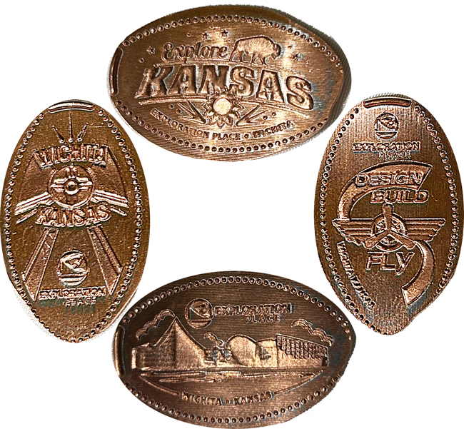 Machine 2 all have, 'Exploration Place, Wichita, Kansas' on them. designs are: