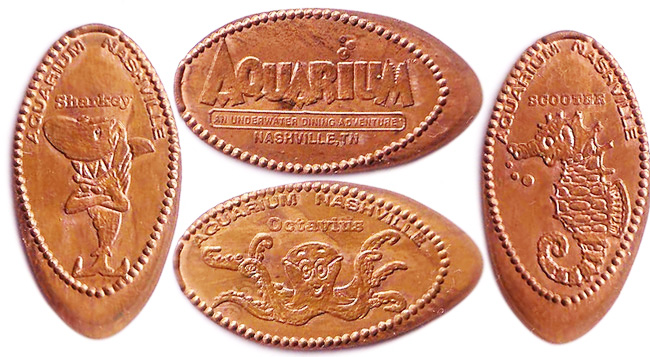 Machine 2: All have 'Aquarium Nashville'' on tyhem. pre loaded, digital, multi-language machine -- pennies are $1 each or all 8 designs for $6