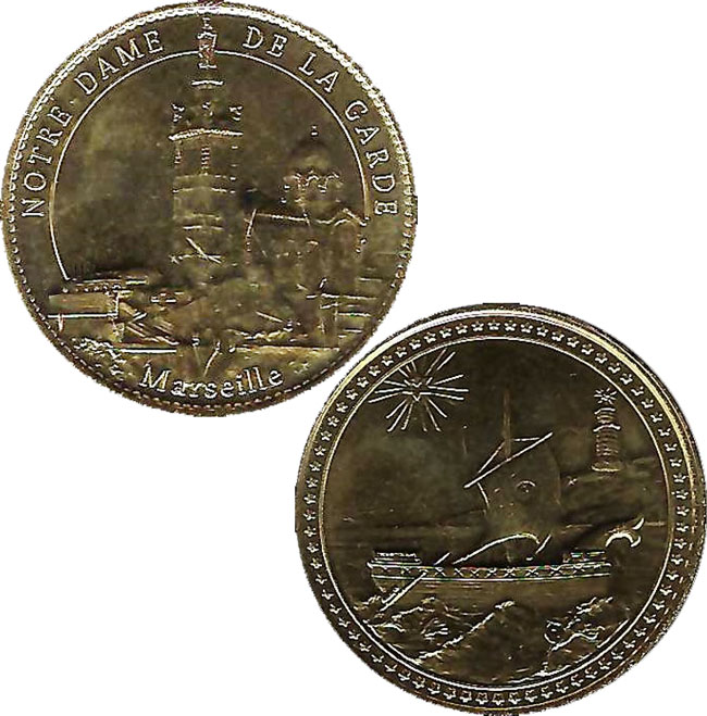 Obverse: Front view of the basilica with 'Notre Dame de la Garde Marseille'.