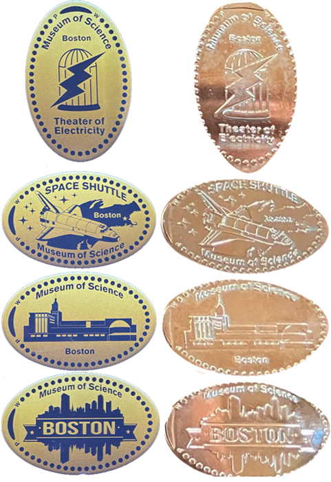 Machine 8: All have 'Museum of Science' on them. Designs are: