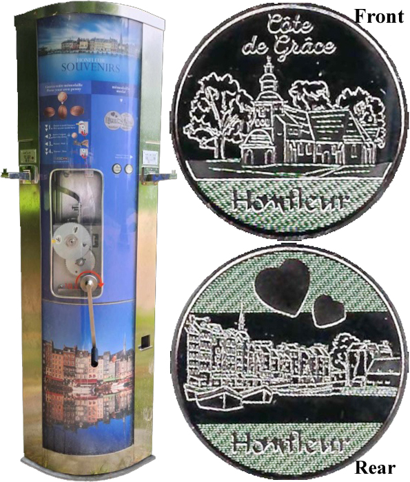 Machine 2 is a Euroscope dual function machine that presses euro cents OR dispenses a Memodaille coin (tokens).