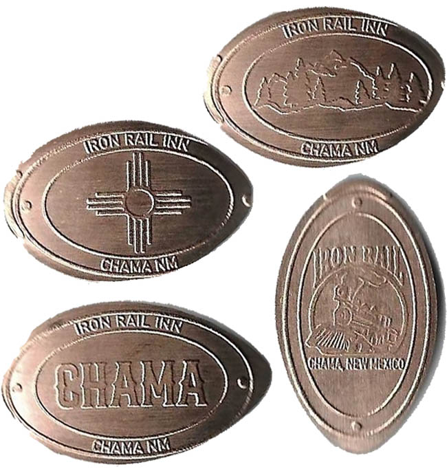 1/02/26: Chama's Hotel and Shops is under new management with the old machines having been removed or relocated. There is a new penny machine in place with four brand new designs. Each design is $1 with the machine accepting coins only. The press is directly to the left when coming through the main entrance. |
