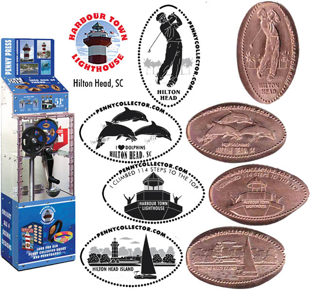 Retired 8: 3 designs: 1) 'Harbor Town Lighthouse Museum', 2) 'Good for a Hug Hilton Head SC', Dolphin, 3) a Pirate,