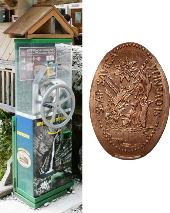 Ukanc 102 Bohinjsko Jezero, Slovenia, 4265 Website 6/12/19: The Penny Machine is at the corner of the terace of the restaurant Planinski dom Savica near the parking lot and the entrance walkway to the waterfall. Across the Penny Machine there is a tiny giftshop. |