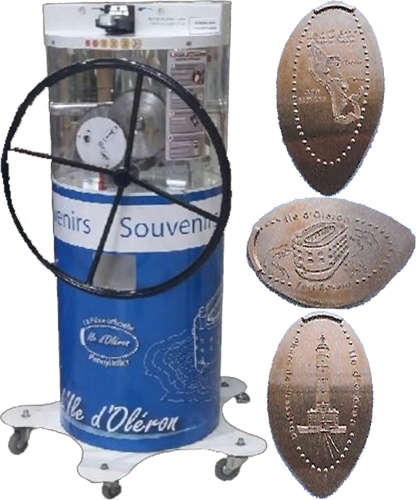 Machine 1 is inside the lobby of the supermarket. Operates with 2€ + 5cent coins per design. Designs all have a beaded border: