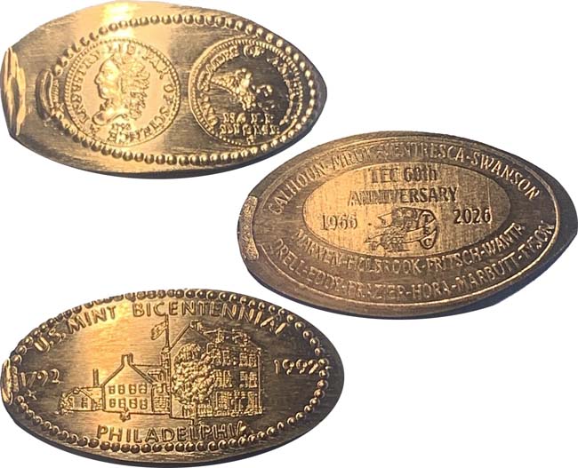 TEC Newsletter designs 2/26: 1) TEC 60th Anniversary design, 2) Front and back of 1790 coin, 3) US Mint Bi-Centennial (1792-1992 Philadelphia