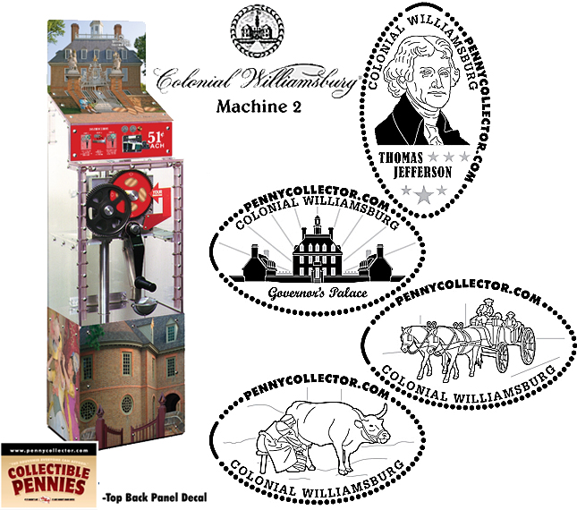 All rears have 'Colonial Williamsburg' with building inside rope circle.