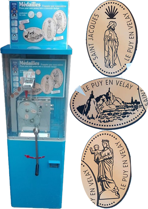 Machine 1 is outside in front. Designs all had a beaded border with 'Le Puy En Velay':