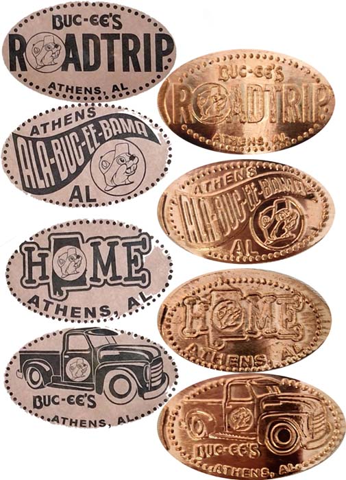 4) 'ROADTRIP', with Buc-ee’s symbol for the O, and the word Buc-ee's above it and Athens, AL below.