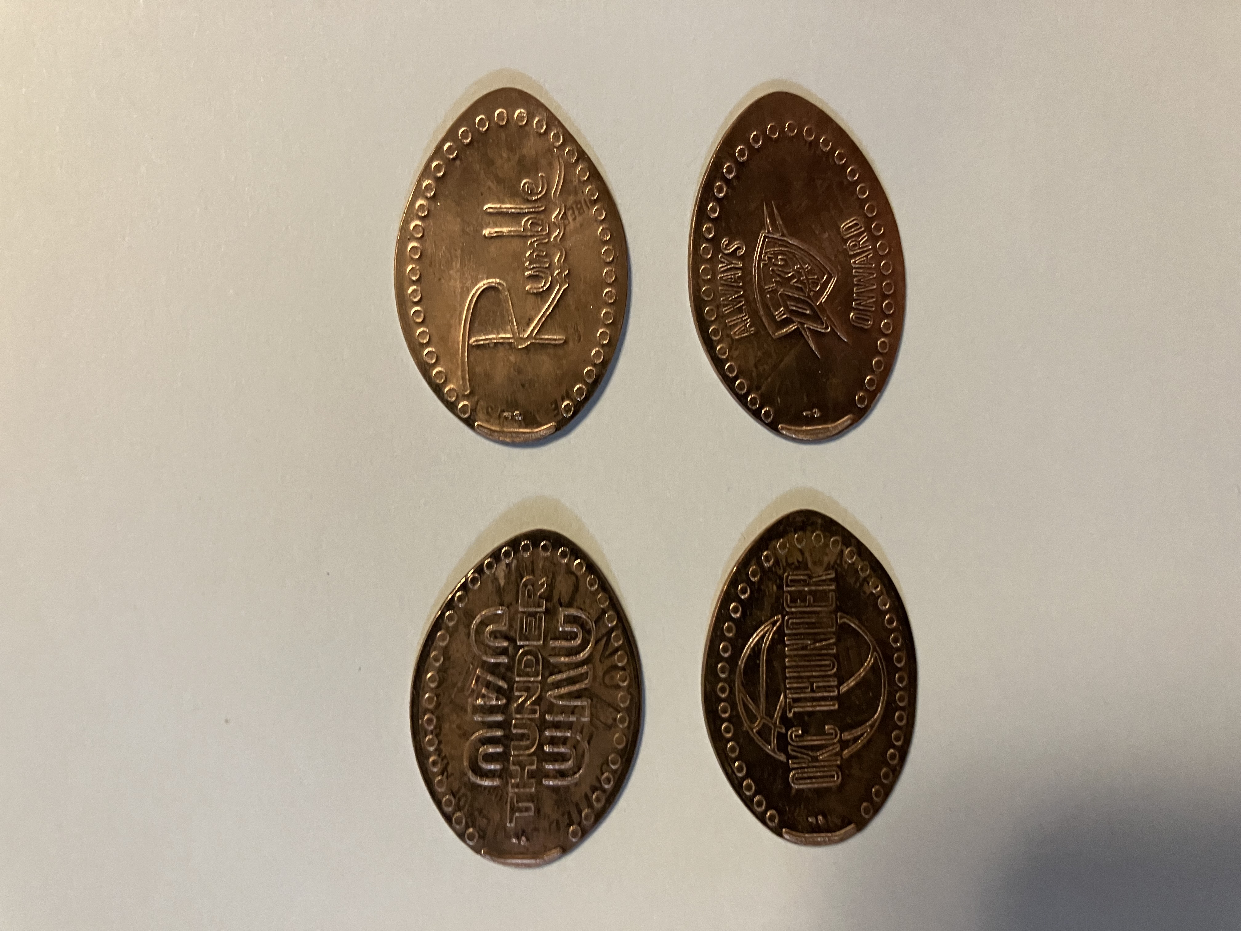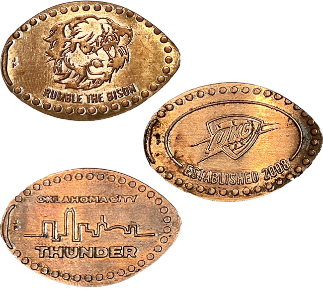 Retired1: 1) Oklahoma City skyline with Thunder, 2) Oklahoma City Thunder logo, 3) Oklahoma City Thunder mascot Rumble the Bison.