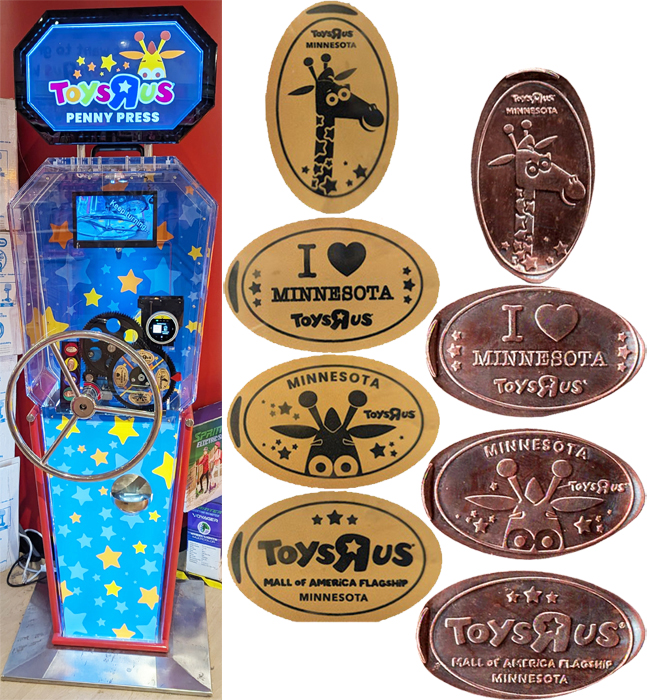 5/26/25: Penny Press machine is in the middle of the ToysRUs store, located on the 1st floor of the mall near Southeast Court. JCK,