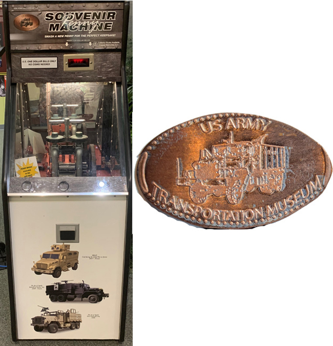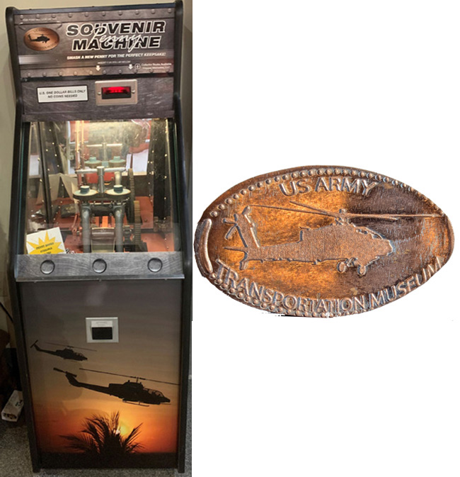8/08/25: One penny has a helicopter, one has an Army truck and one has a train engine. Machines take a $1 bill, and the machine has pre-loaded zincs inside. |