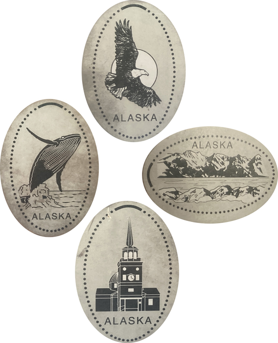Machine 1: This is a hand crank $1 per design machine preloaded with pennies. Designs are: