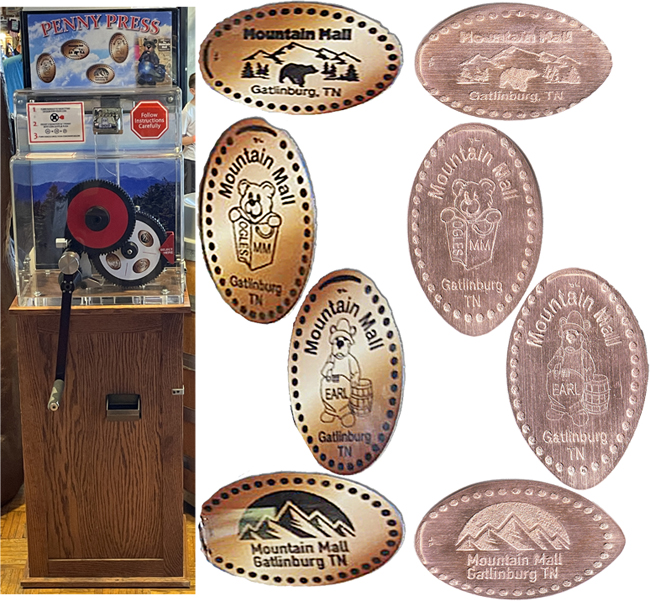 All have 'Mountain Mall Gatlinburg, TN', on them. Designs are: