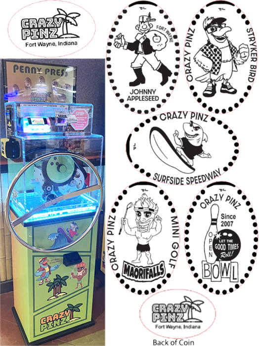 1414 Northland Blvd. Fort Wayne, IN , 46725 Phone: 260-490-2695 Website 5 unique designs with each including the Crazy Pinz logo and "Fort Wayne, Indiana" on the reverse side.