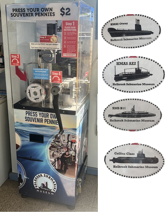 Machine located in the museum entry/gift shop, not behind any pay wall. It is coin operated ($2 AUD) only and presses on copper blanks.