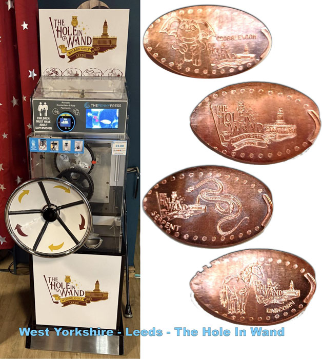 There is a J&J 4-die machine located in the gift shop. Each design cost £2 contactless and the machine supplies the penny. Designs are: