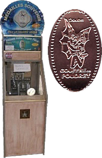 Machine 1 is in the entrance building opposite the cash register. Cost to press: €1.05. Design has a beaded border: