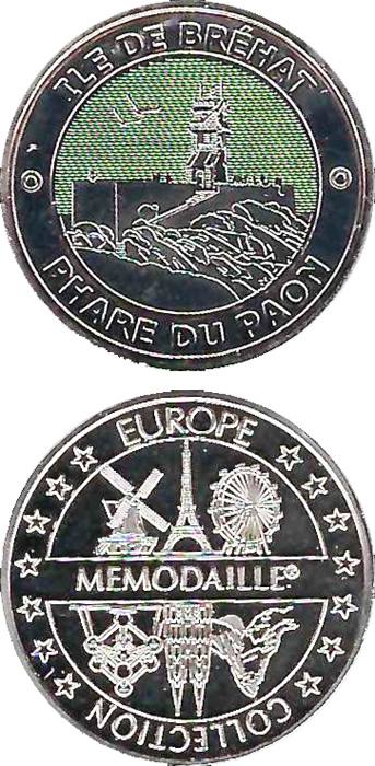 Obverse: Paon lighthouse with 'Ile de Bréhat Phare du Paon'.