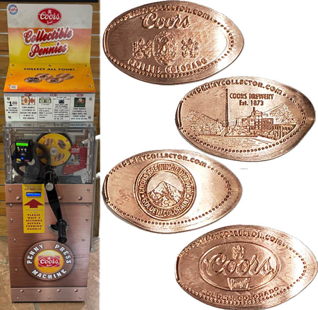 Machine 2 accepts $1 bills or a credit card which is $4 for all 4 designs. Located by the column just outside the entrance into gift shop, which is at the end of the tour. The four designs are: