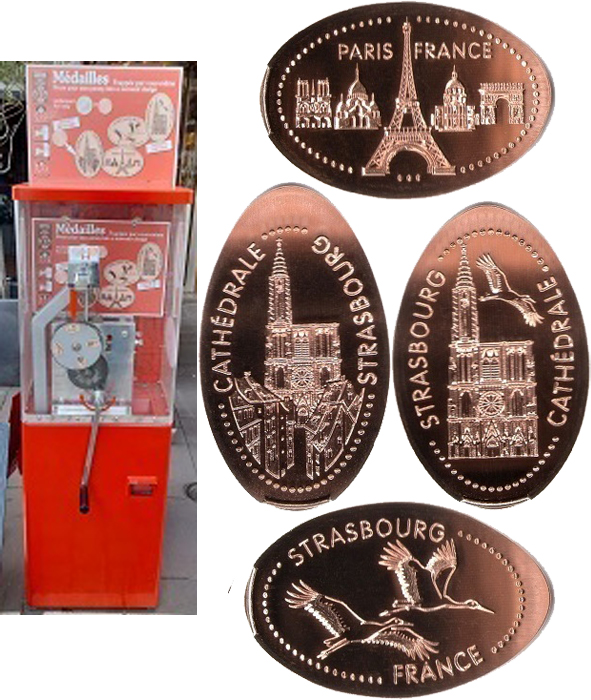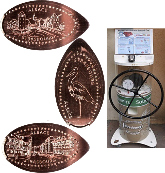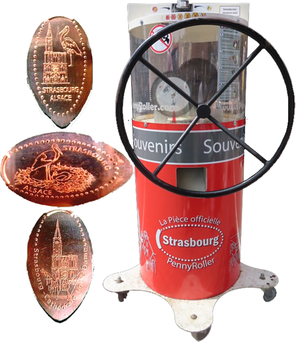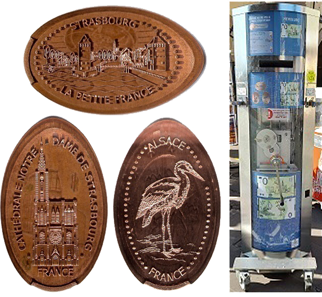 Machine 3 . at the gift shop Souvenirs Béquia 14 rue des Dentelles (Strasbourg), Each costs €1.05. Designs are: