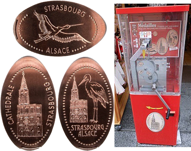 Machine 4: at the gift shop Au Palais Rohan Souvenirs 8 place de la cathédrale (Strasbourg). Each costs €1.05. 4 designs