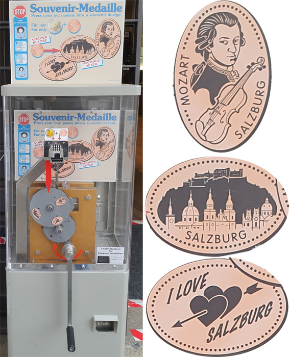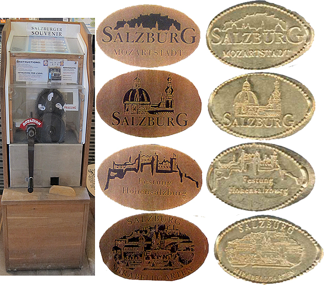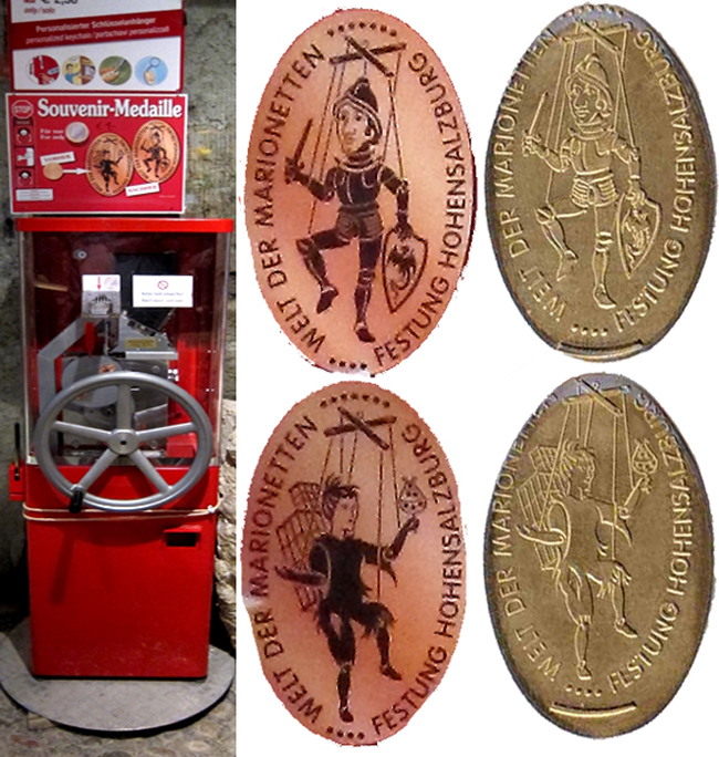 Machine 6: is just inside the entrance to the puppet museum.Cost to press: 2 Euro for each design. You don t need a 5 cent Euro Coin as the machine comes with already pressed coins. Designs all have a dotted border: