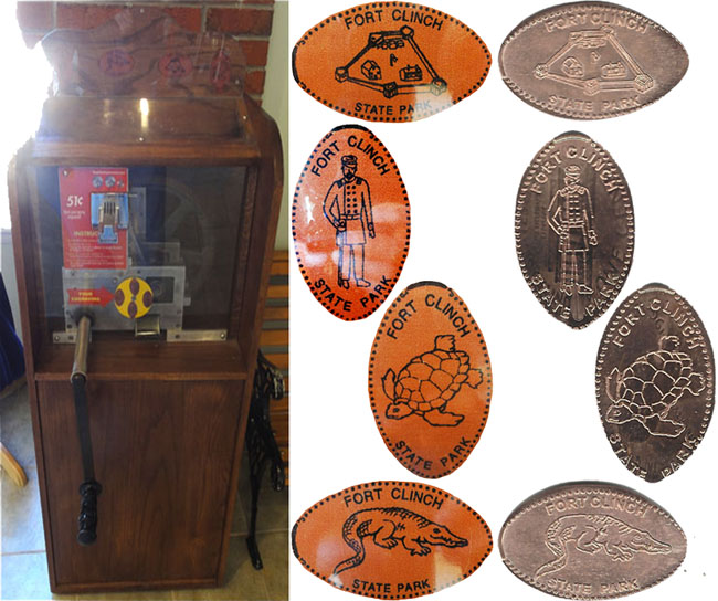 2601 Atlantic Avenue Fernandina Beach, FL , 32034 Phone: (904) 277-7274 Website The four-die handcrank machine, is located in the visitor's center. Charges are now $6.00 per car to enter the park, and $2.00 for admission to the fort. You must pay to enter the park, to get to the machine.